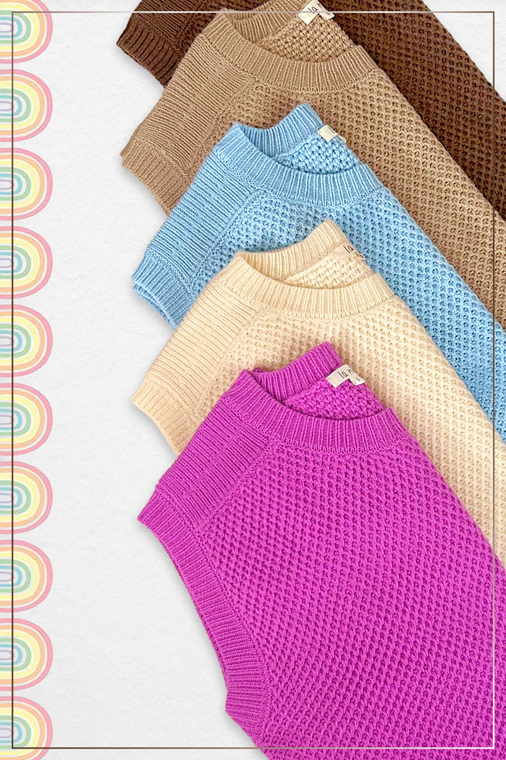 knit top, sweater vest, stylish top, layering piece, loose fit, soft fabrication, round neckline, basic top