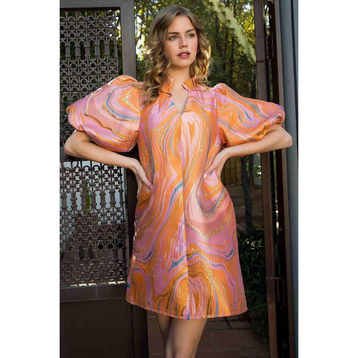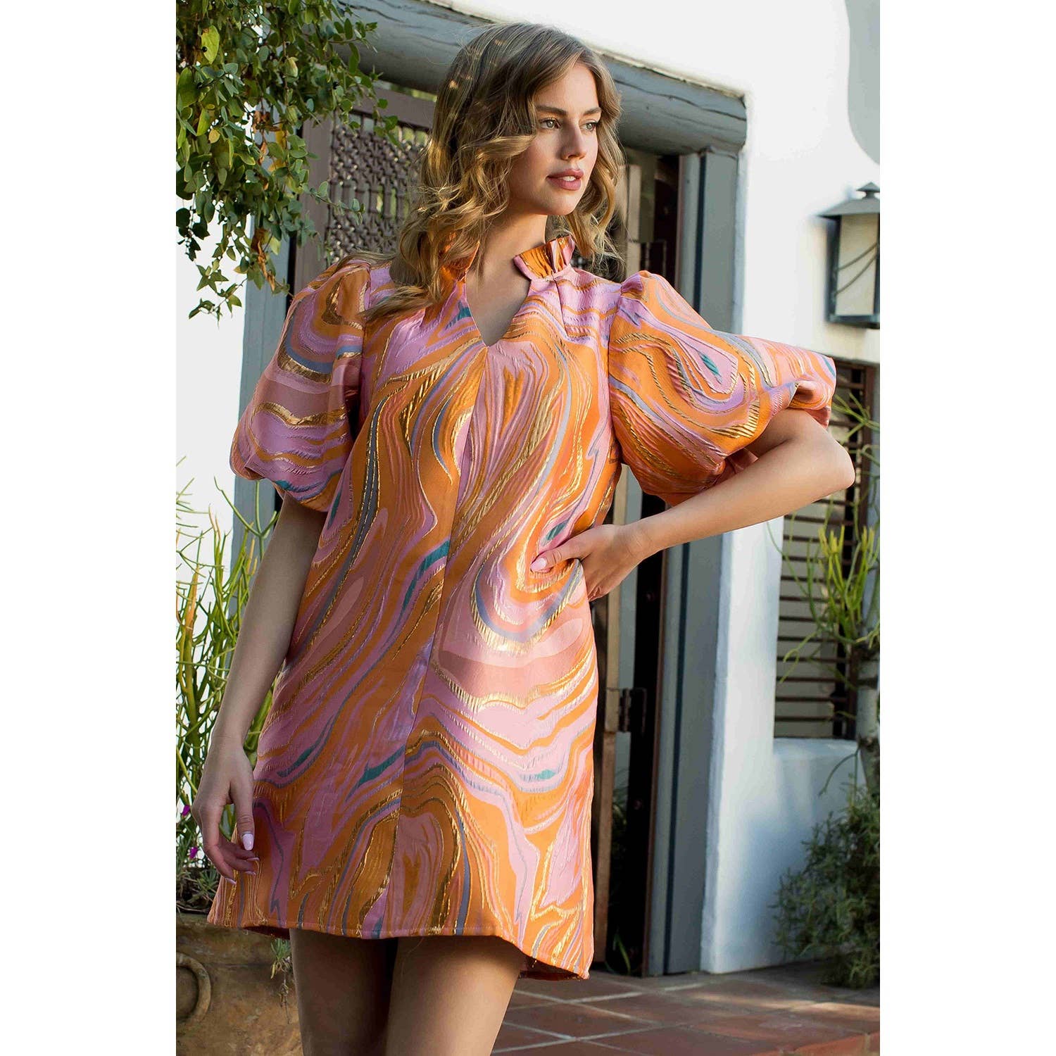 Puff Sleeve Textured Dress