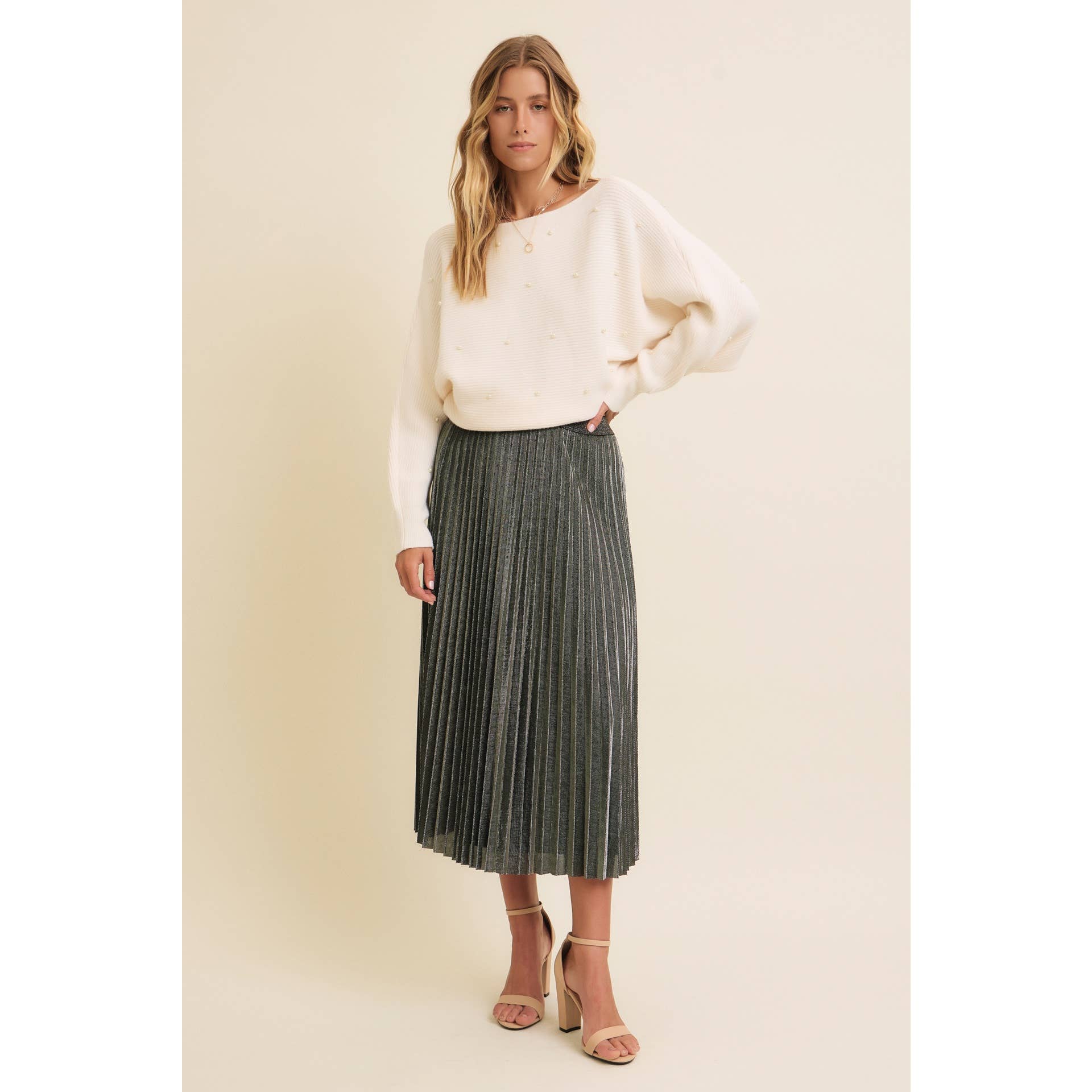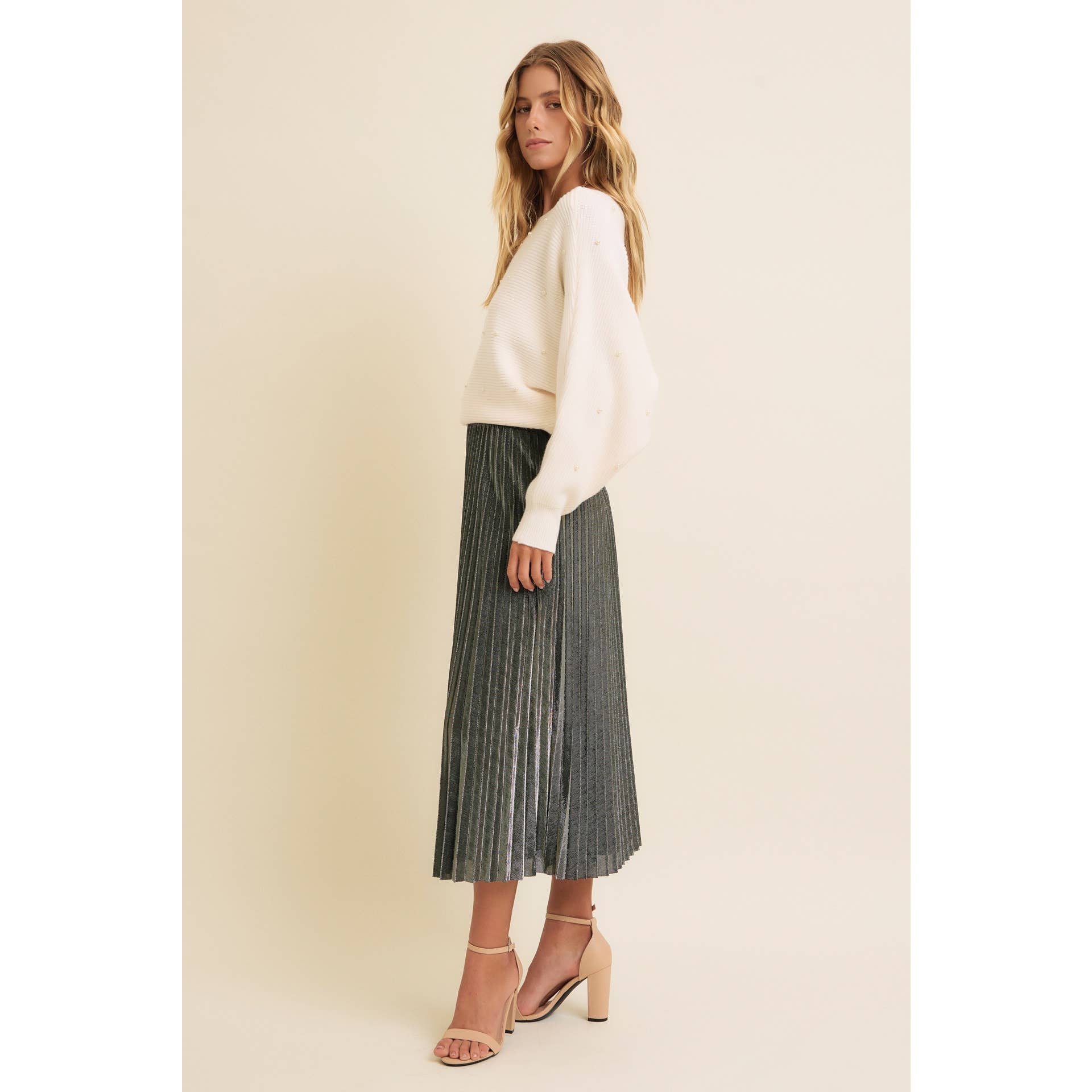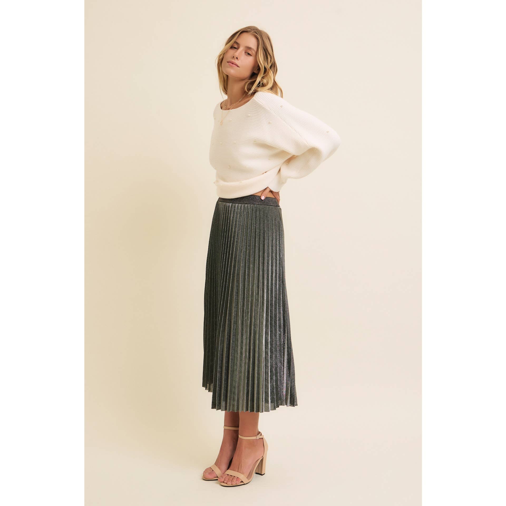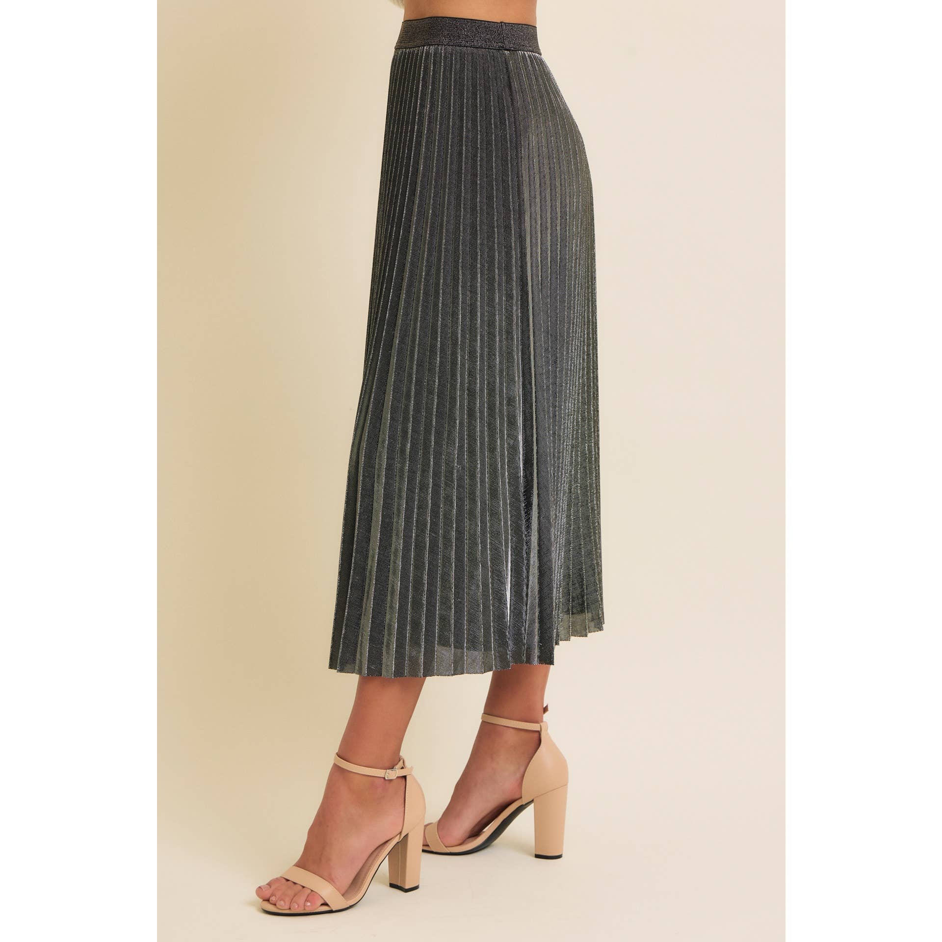SPARKLING ACCENT PLEATED MIDI SKIRT