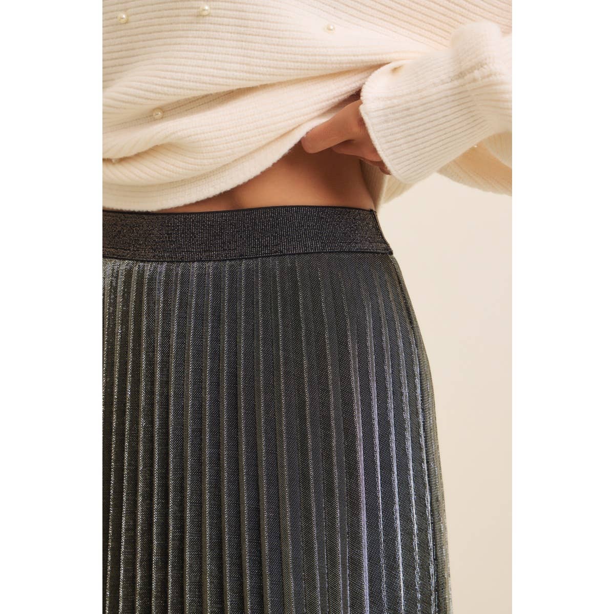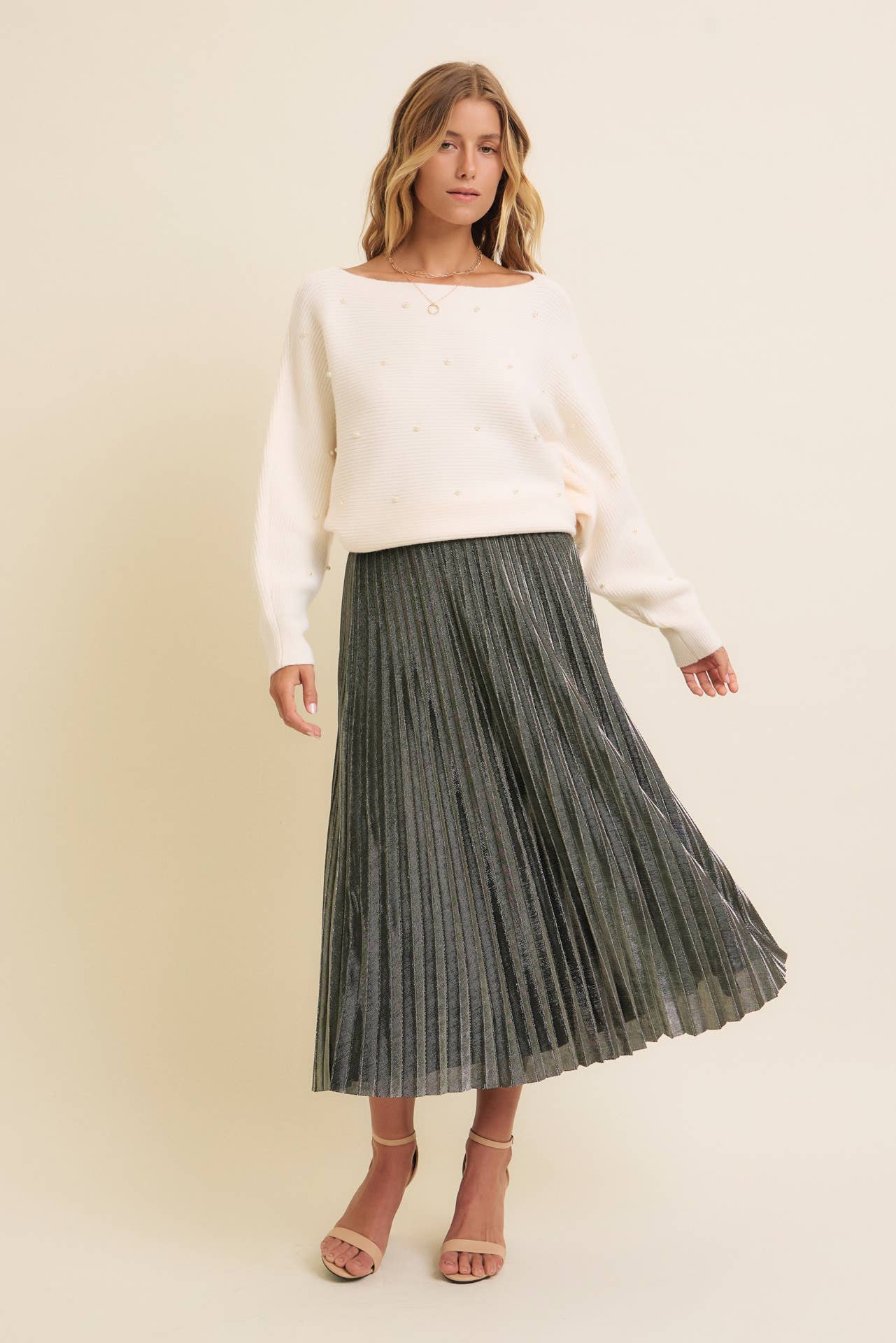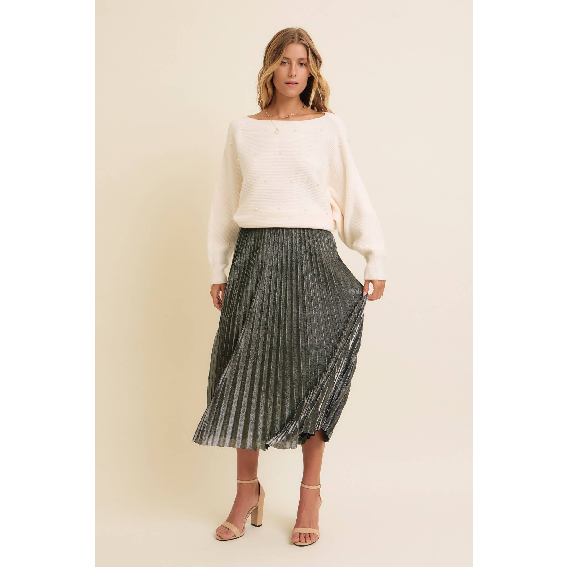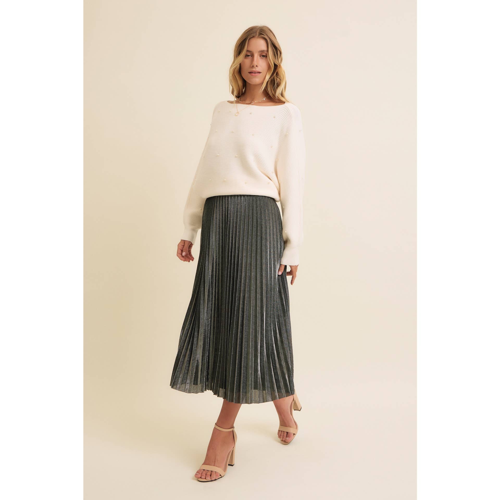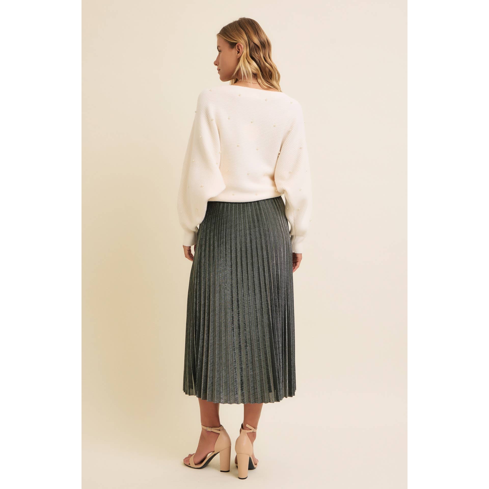 SPARKLING ACCENT PLEATED MIDI SKIRT