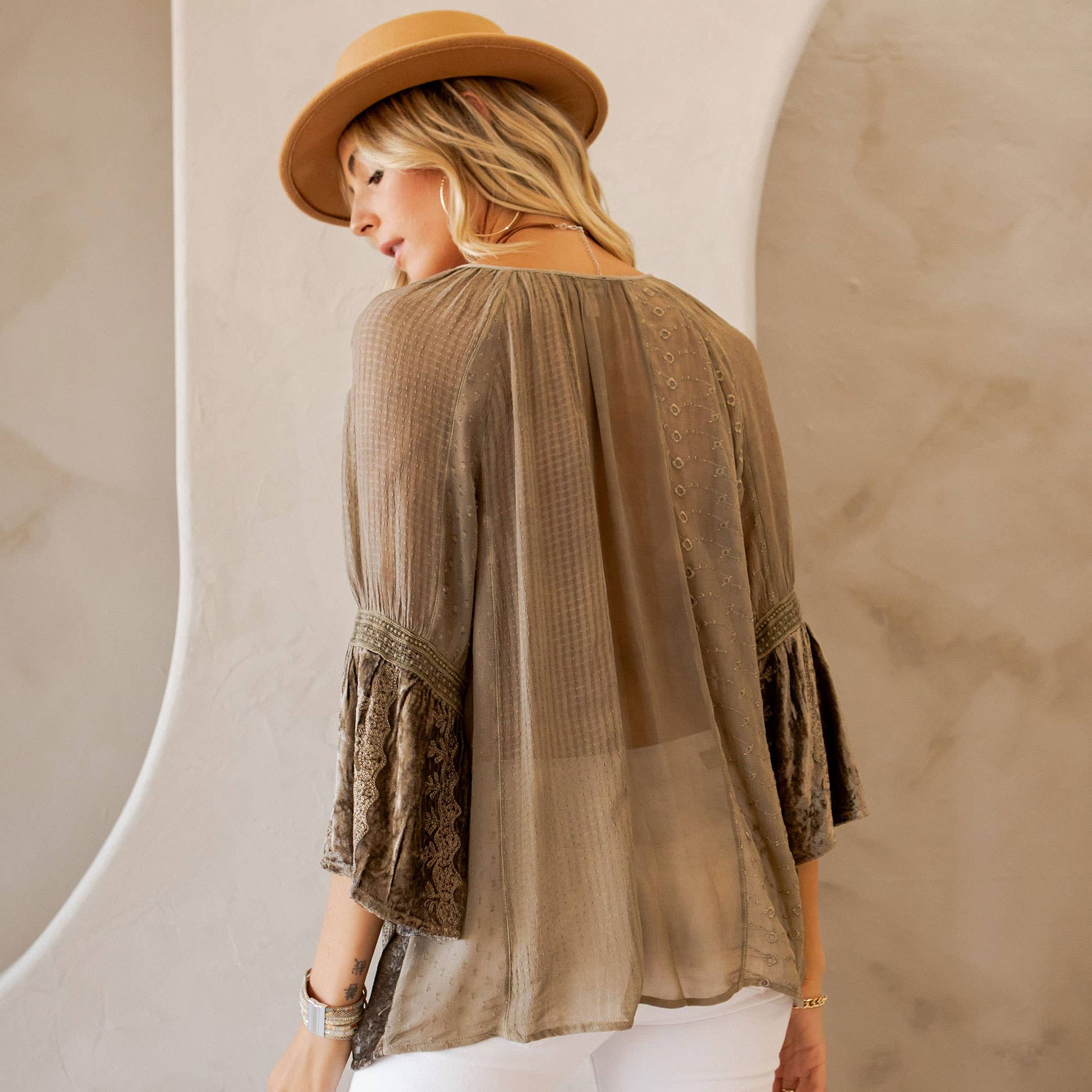 Velvet & Georgette Patchwork Peasant Top