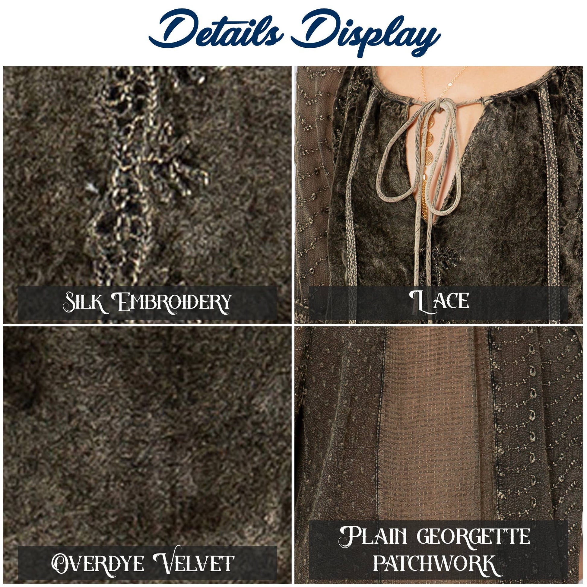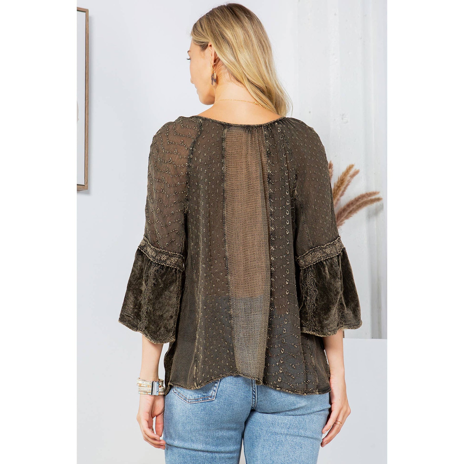 • Velvet and georgette patchwork peasant top