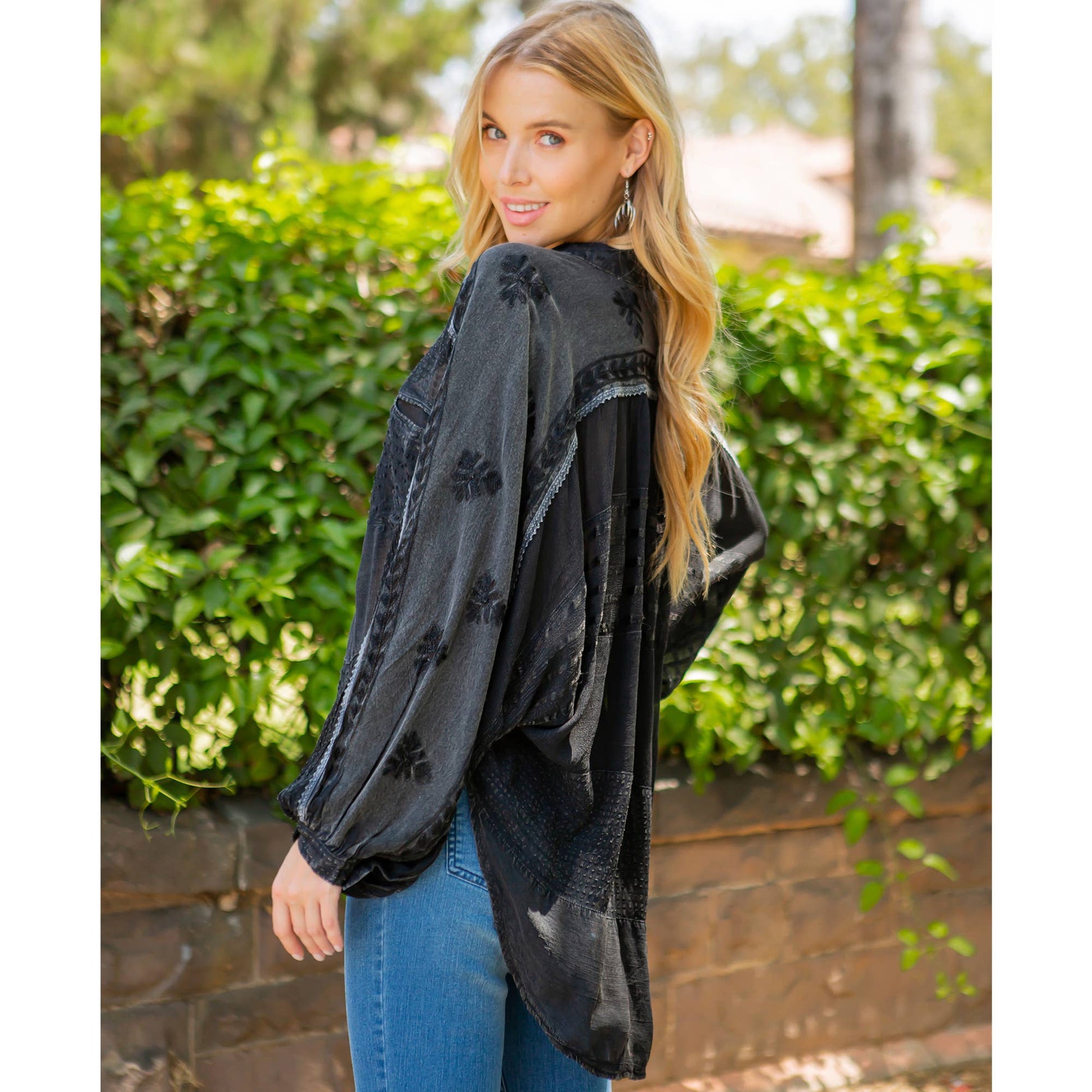Embroidery Bishop Sleeves Loose Top