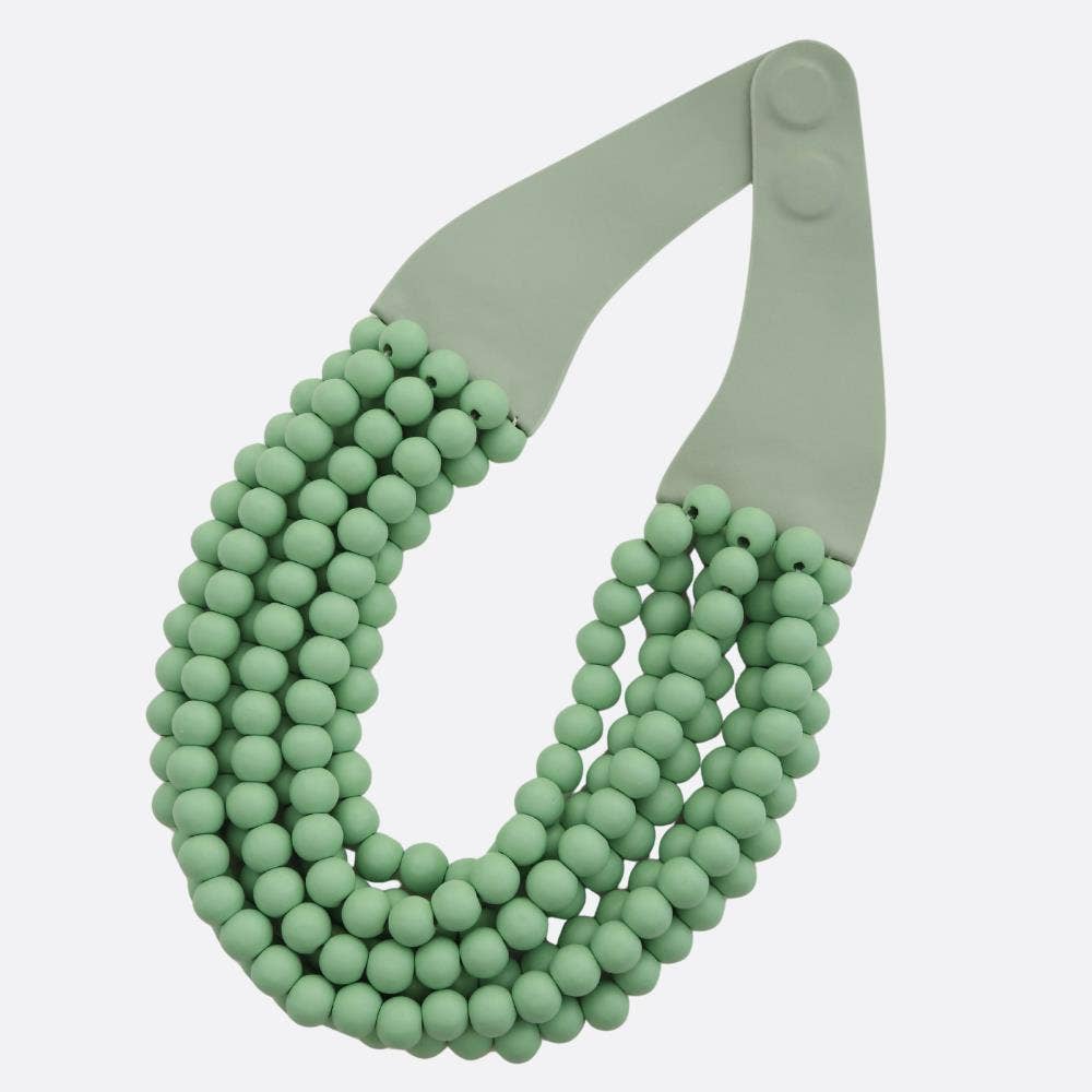 MULTI-STRAND MATTE WOOD BEADED NECKLACE WITH FAUX LEATHER BACKING LENGTH: 20" DROP: 3" BOHO EARTHY RUSTIC NATURAL TEXTURED HANDCRAFTED ARTISAN STATEMENT UNIQUE RELAXED WARM MINIMALIST FREE-SPIRITED VERSATIL